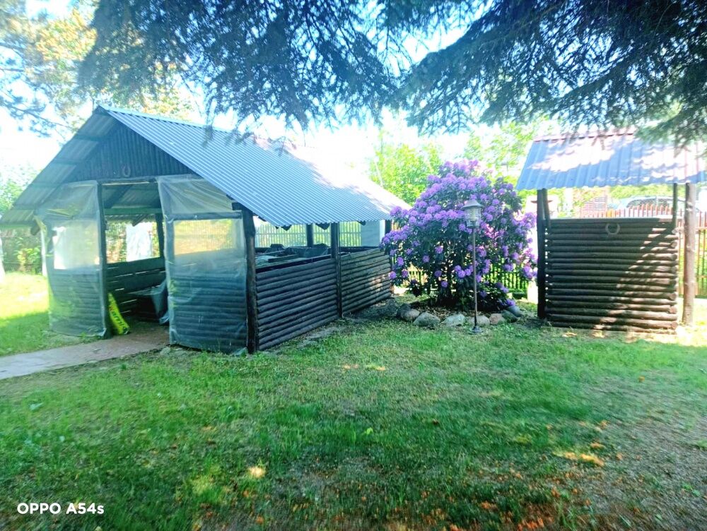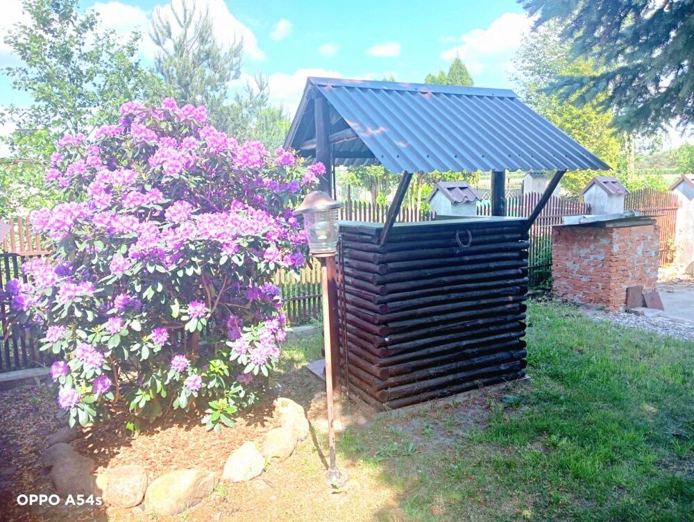 Na posesji znajduje się duża altana, grill, studnia, wędzarka oraz drewniany garaż na auto.
